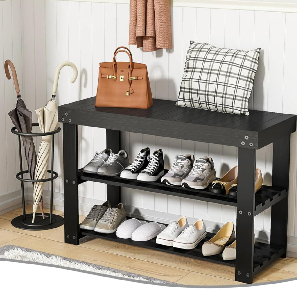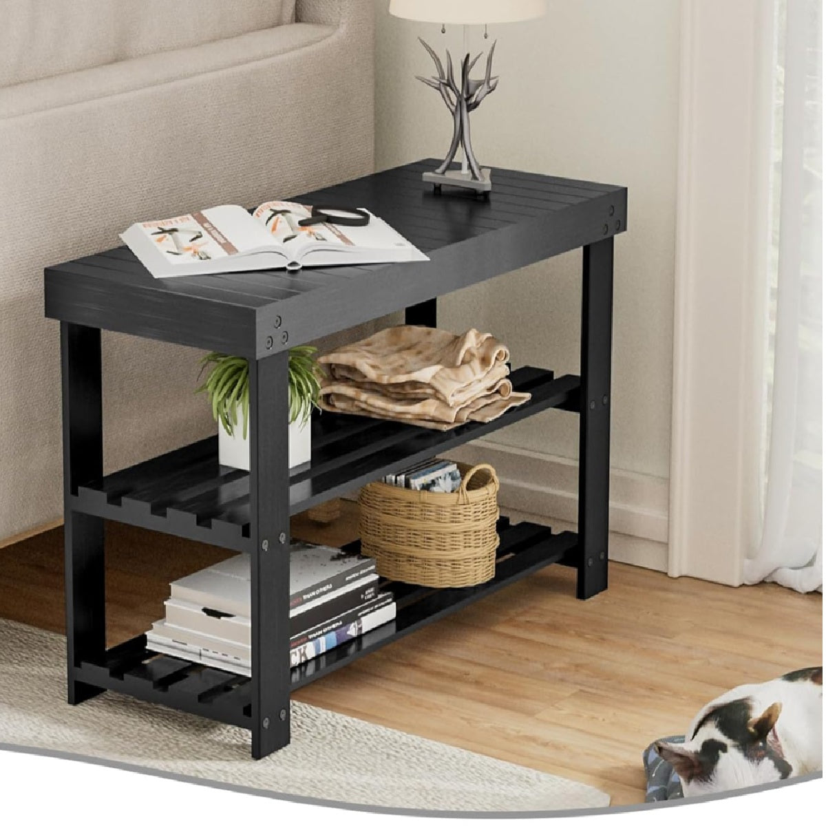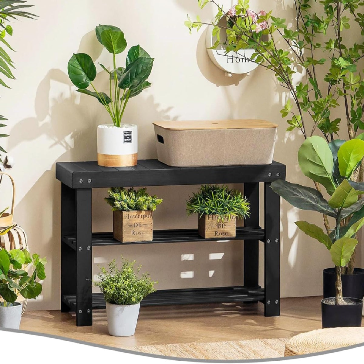 Banqueta Zapatero Bambú Negro 70x28x45cm Saunte