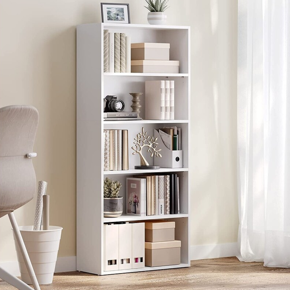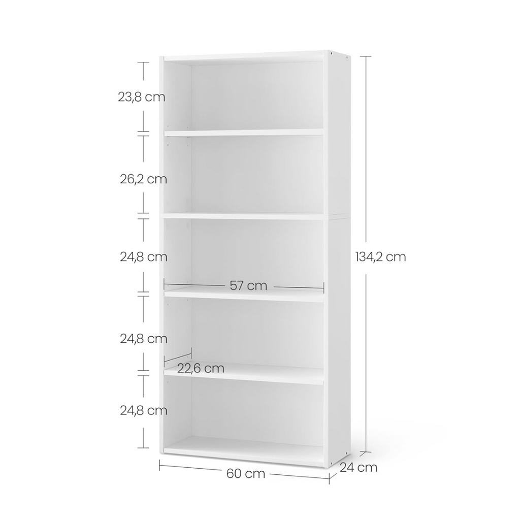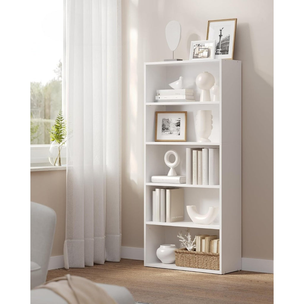 Es la solución ideal para organizar y exhibir tus libros, objetos decorativos y accesorios con estilo y elegancia. Con un diseño clásico y acabado en color blanco, esta estantería aporta un toque de sofisticación a cualquier espacio, ya sea en tu sala, oficina o dormitorio. Sus cinco niveles ofrecen amplio espacio de almacenamiento, permitiendo mantener todo ordenado y a la vista