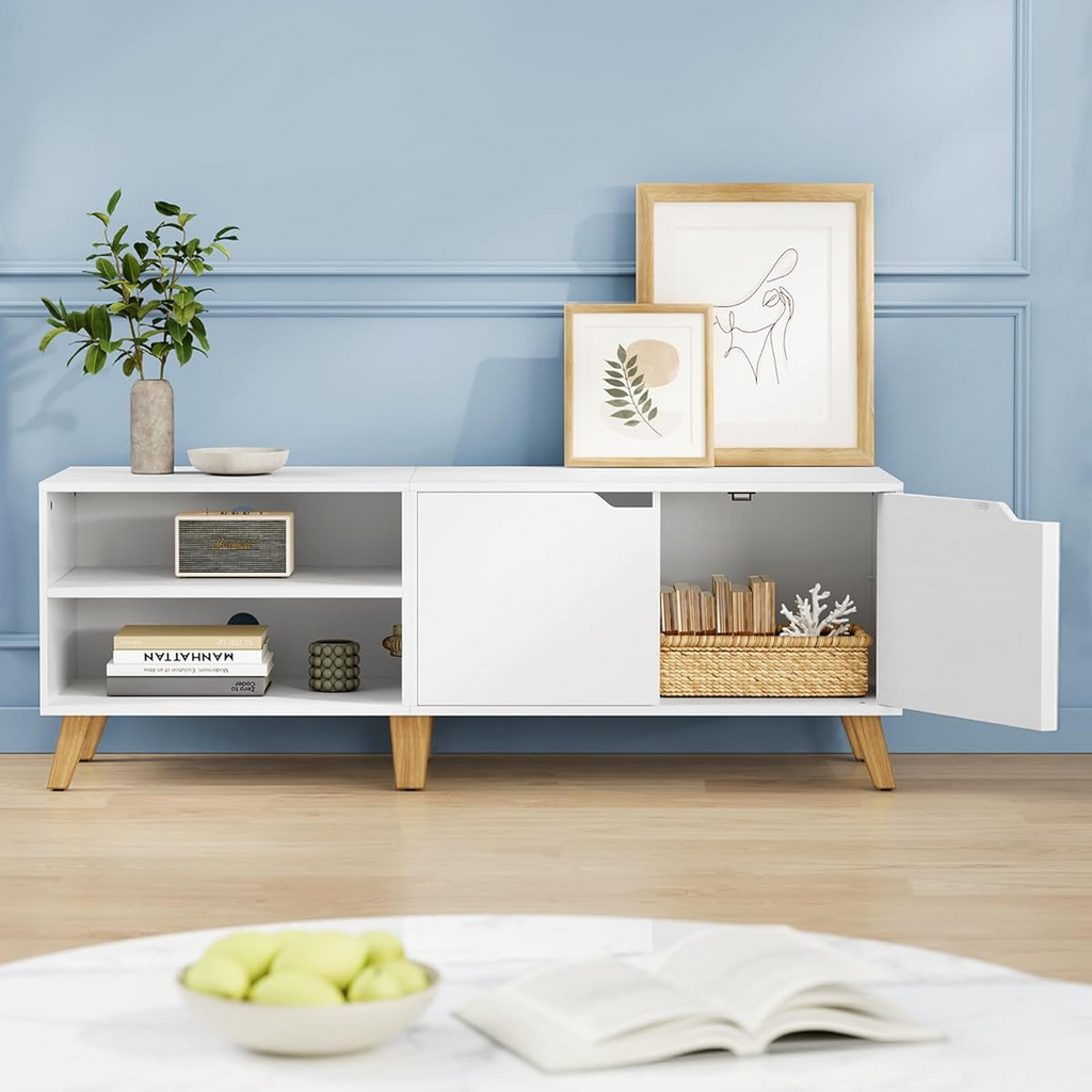 Funcionalidad y estilo en un diseño moderno y elegante. Con su acabado en color blanco, aporta luminosidad y frescura a cualquier espacio, convirtiéndose en el complemento perfecto para tu sala o área de entretenimiento. Su estructura robusta y de alta calidad ofrece un amplio espacio para colocar tu televisor, dispositivos electrónicos y accesorios, manteniendo todo organizado y a mano.