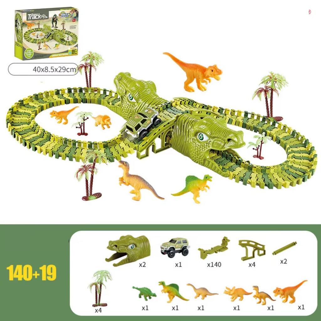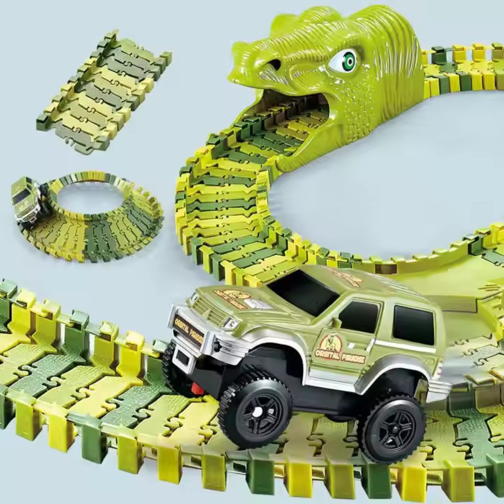 Pista de Autos Armable Dinosaurios con Obstáculos 140 piezas