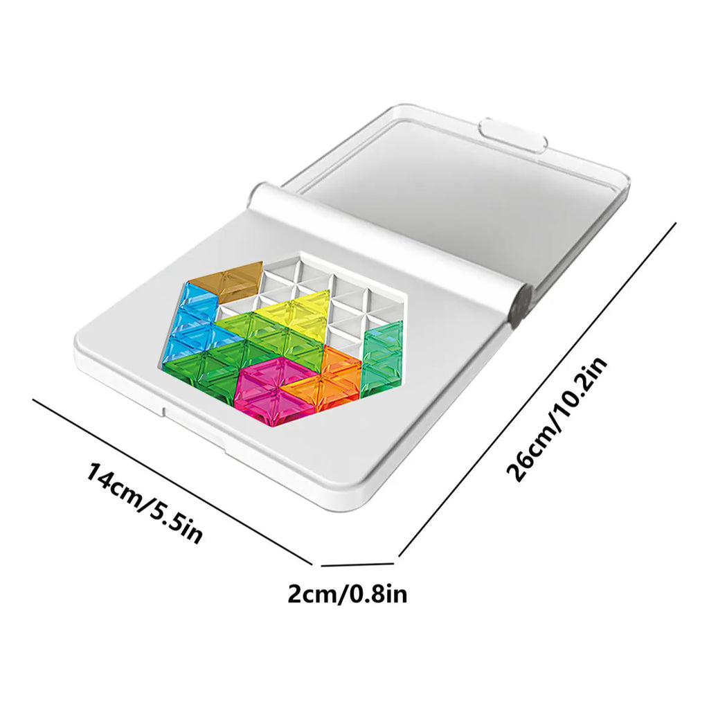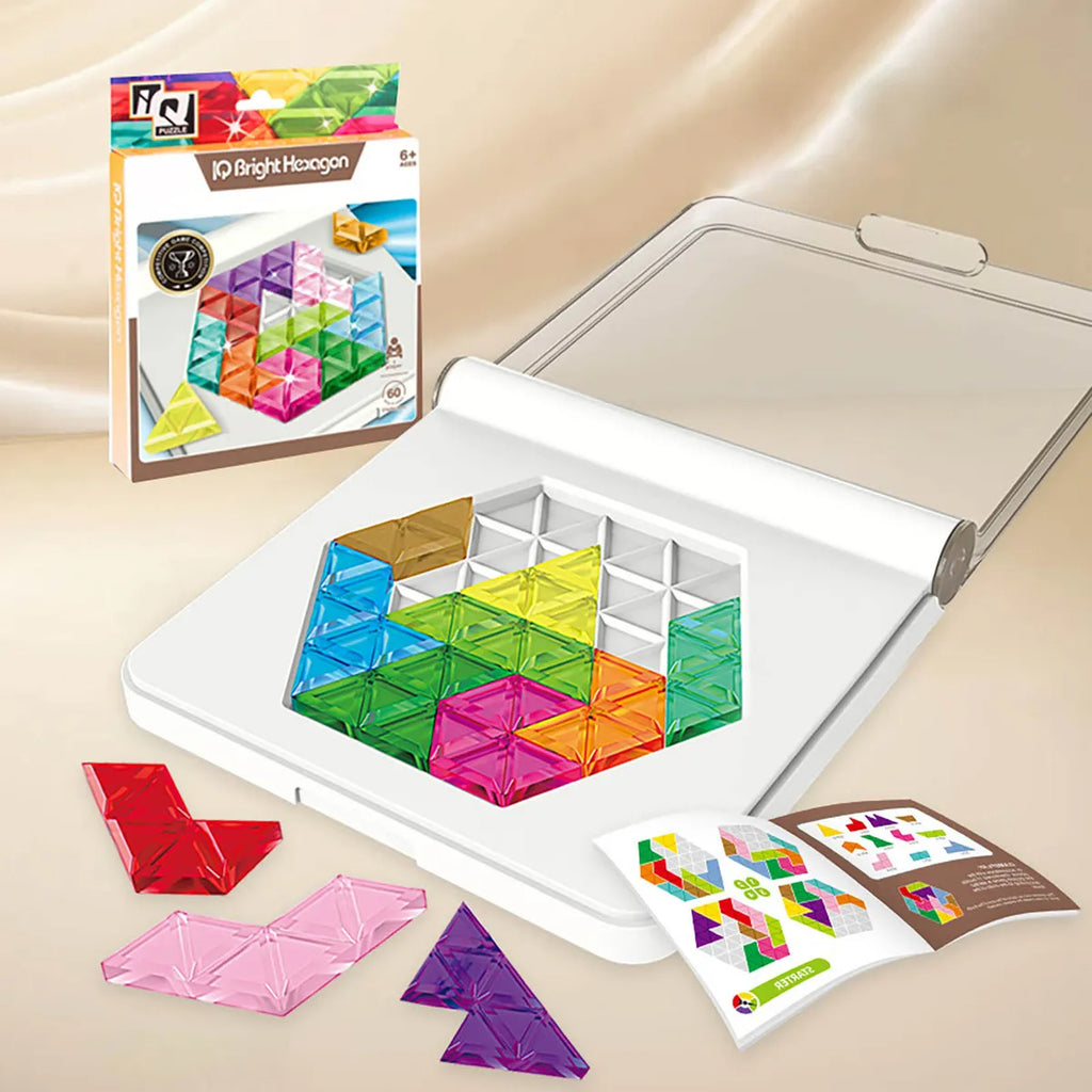 Un clásico juego de rompecabezas en formato hexagonal con piezas tipo tangram. Permite a los niños crear múltiples figuras y patrones geométricos. Favorece la resolución de problemas, el pensamiento lógico y la creatividad.