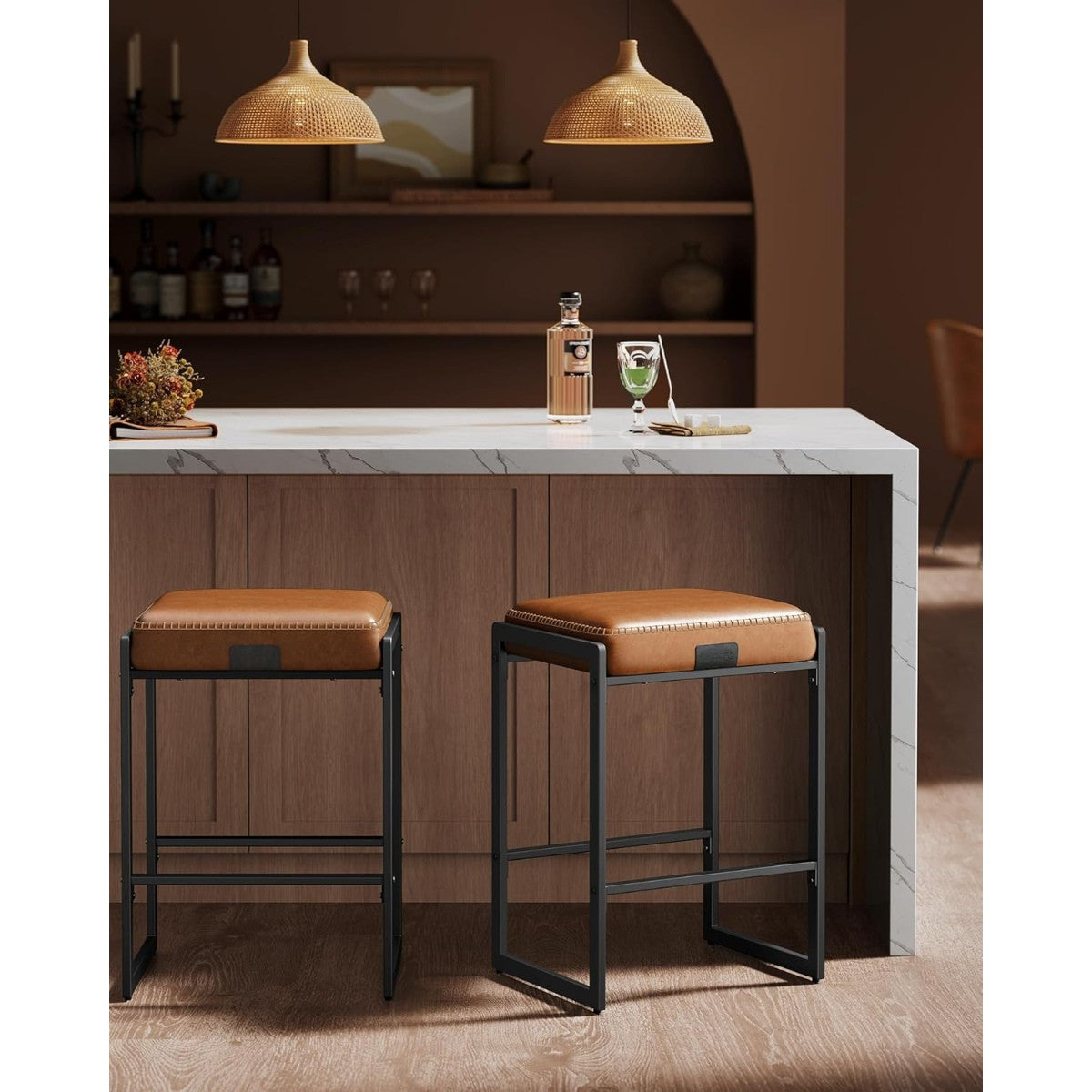 Set 2 Sillas Taburetes Eco Cuero Café Roke